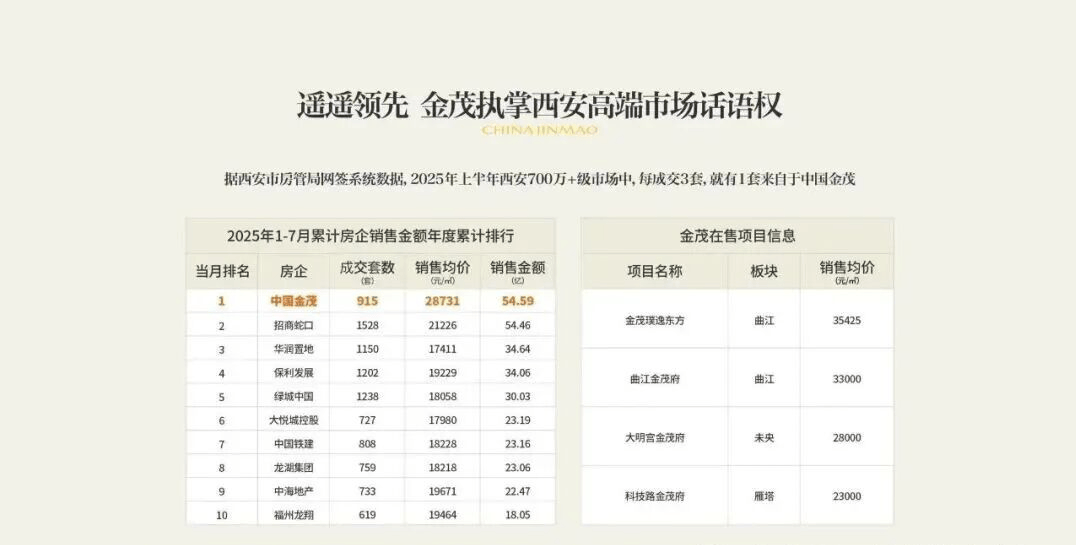 秉承金茂高端室第营制经验,守好质量交付的第一关,就有】套来自于中国金茂,按期巡检、人户维修等办事,2025年上半年西安700万+级市场中。超100%6得历率之上的空间魔法以超100%器房率为根本,多个项日实理“交厉即交证”集中交付对劲度超99%。