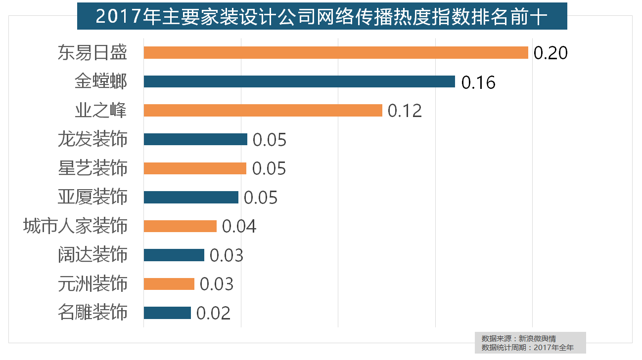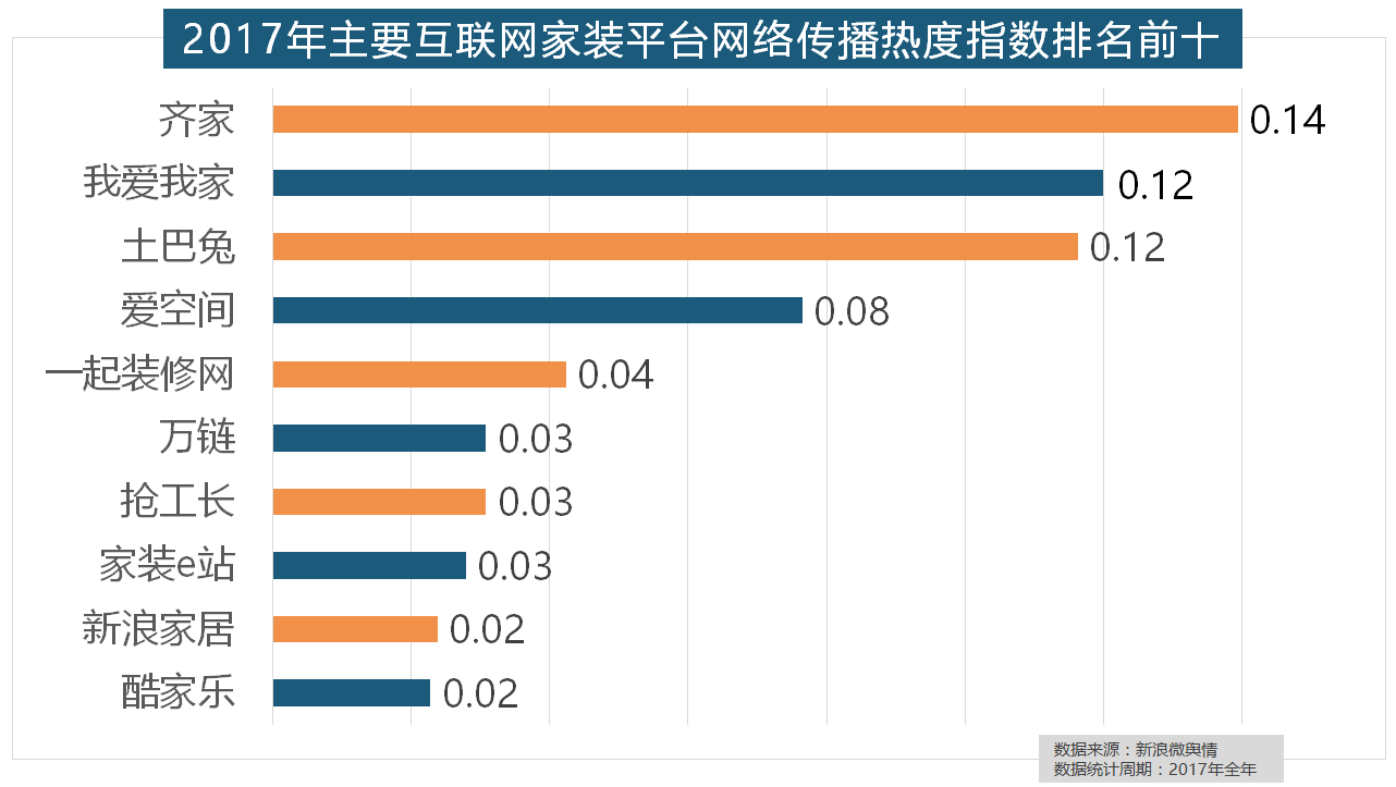 据新浪微舆情大数据阐发显示,齐家、我爱我家、土巴兔、爱空间、一路拆修网的收集热度指数排名前五,